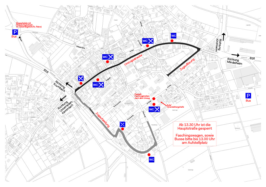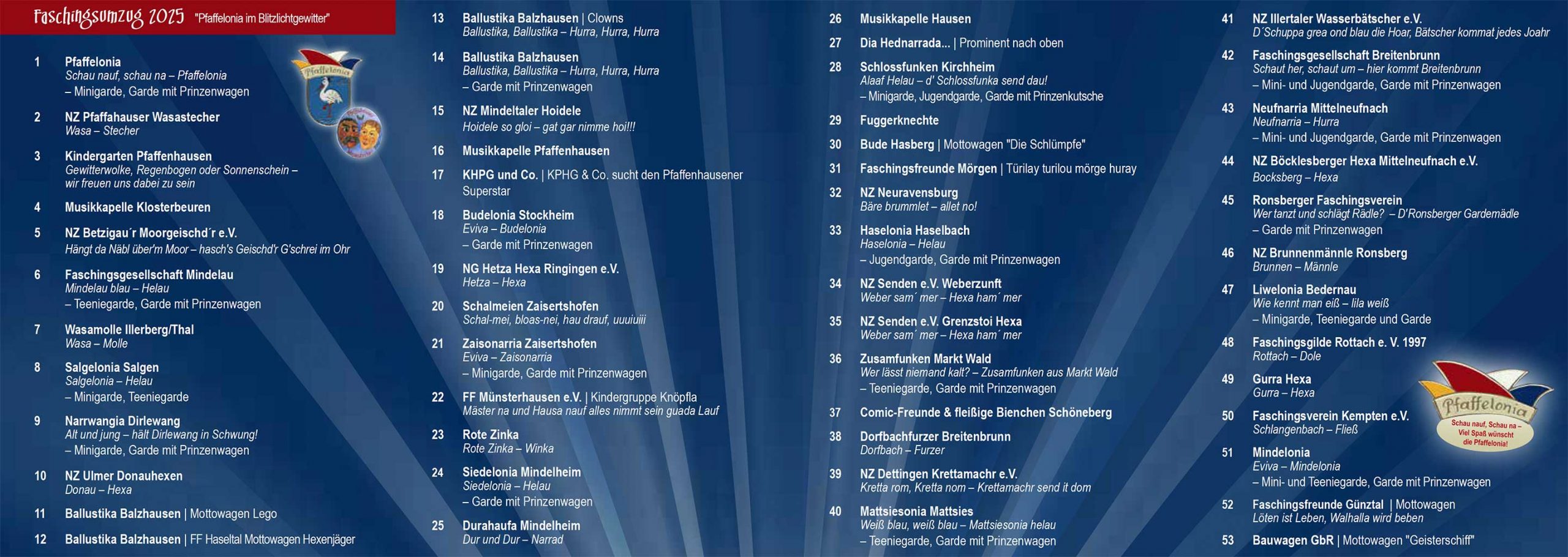 Schön, dass ihr alle dabei seid. Faschingsumzug 2025 Flyer als PDF Umzugsstrecke Download Karte Umzugskarte als PDF